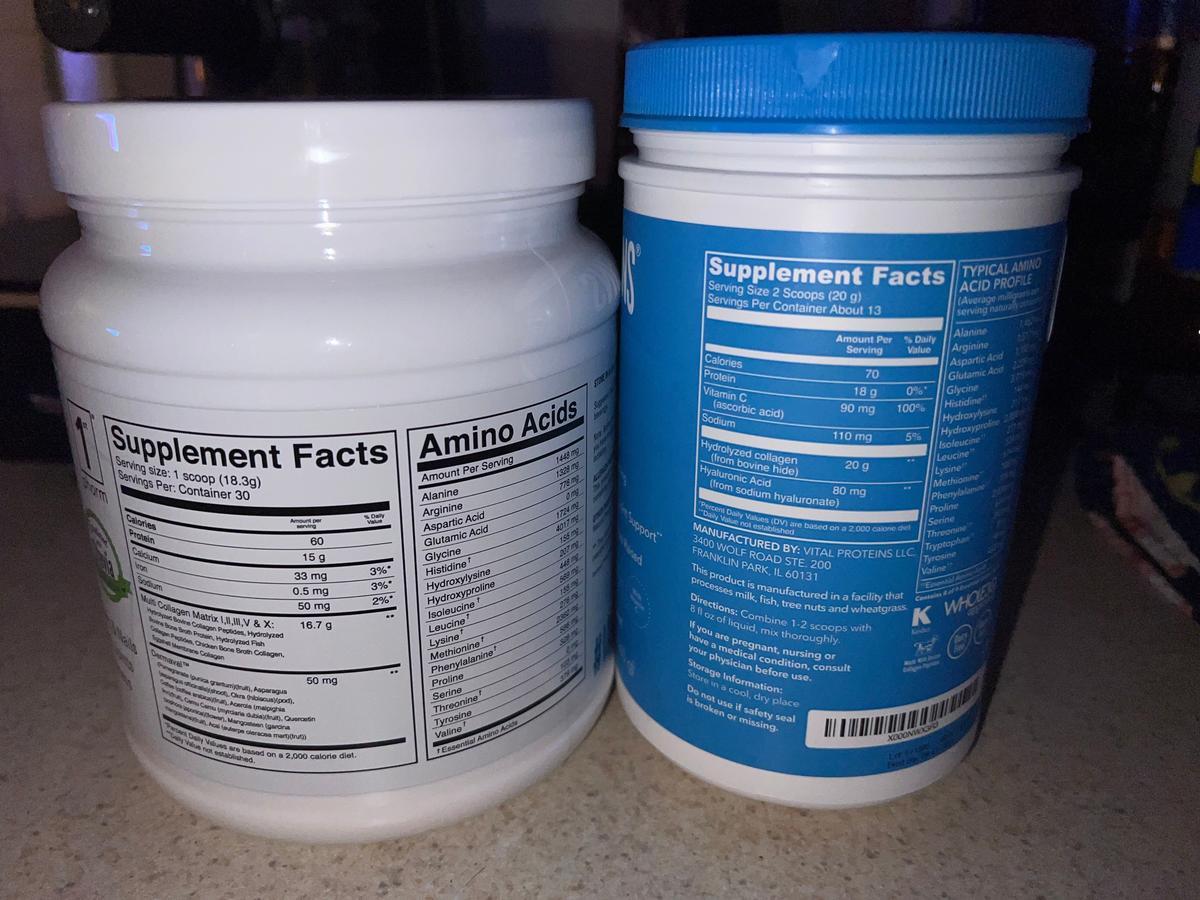 | Ingredients | Multi Collagen Matrix I,II,III,V & X (Hydrolyzed Bovine Collagen Peptides, Hydrolyzed Bovine Bone Broth Protein, Hydrolyzed Fish Collagen Peptides, Chicken Bone Broth Collagen, Eggshell Membrane Collagen), Natural Flavors, Stevia Leaf Extract, Dermaval™ (Pomegranate (Punica granatum)(- fruit), Asparagus (Asparagus officinalis) (shoot), Okra (Abelmoschus esculentus) (pod), Coffee (Coffea arabica) (fruit), Acerola (Malpighia glabra) (fruit), Camu Camu (Myrciaria dubia) (fruit), Quercetin (Sophora japonica) (flower), Mangosteen (Garcinia mangostana) (fruit), Acai (Euterpe oleracea mart) (fruit)), Monk Fruit Extract. CONTAINS: Egg, Fish (one or more of the following: Cod, Pangasius, Tilapia) |