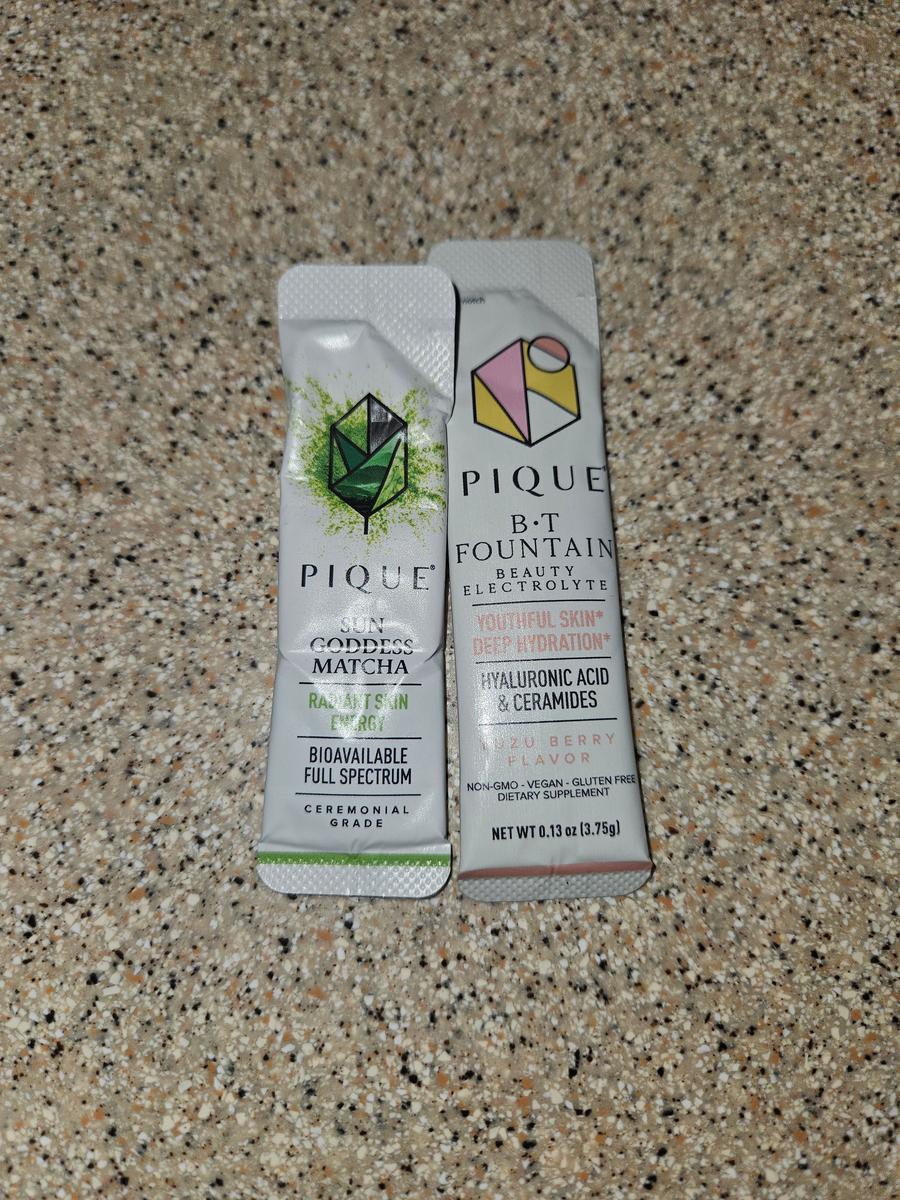 Description·EGCG firms and brightens skin·Catechins help curb sugar and hunger cravings·Chlorophyll supports skin clarity·Caffeine supports lipid metabolism·L-theanine promotes calm and balance·100% organic, ceremonial-grade, and screened for purity·28 servings in each carton·Radiant Skin·Healthy Metabolism·Calm EnergyWhat’s inside?Sun Goddess Matcha·Sun Goddess Matcha·Ingredient BreakdownSun Goddess Matcha·Radiant Skin·HEALTHY METABOLISM·Calm EnergyWhat’s Sun Goddess Matcha?Sun Goddess Matcha is organic, ceremonial-grade matcha made by third generation teamasters, using 130-year-old techniques.Our matcha is sourced from Kagoshima, situated in a lush valley at the southernmost tip of the Japanese archipelago – the furthest distance from environmental toxins – the source of this matcha is unrivaled in purity. Our tea farm is located high in the mountains where cooler temperatures are a natural insect repellent. Legend has it that the SUN GODDESS Amaterasu appeared at a volcano within sight of our tea gardens and blessed the land with pure light.How is Pique different?Our matcha trees are cultivated with 35% longer shading periods to maximize phytonutrient potential. It is also screened for pesticides, heavy metals, toxic mold, and radioactive isotopes.Ingredients100% organic ceremonial grade matcha from Japan.Sun Goddess Matcha is grown in Kagoshima, at the southernmost tip of the Japanese archipelago—the furthest distance from industrial activity. This mountainous region is Japan’s first designated national park and lies adjacent to the Blue Zone, Okinawa. Our tea trees are fed by pristine spring water and fertile volcanic soil. Cool mountain temperatures naturally repel insects, and the mountainous terroir eliminates pesticide drift from neighboring farms.